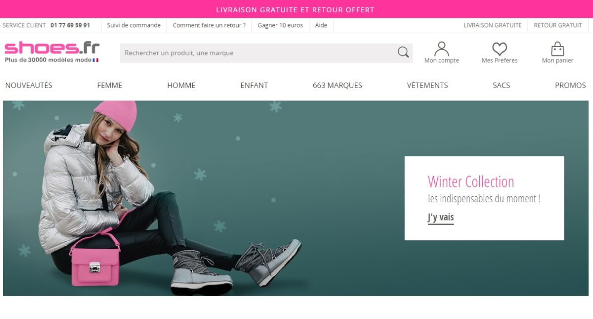 Інтернет-магазин Shoes.fr має великий вибір товарів: одягу, взуття та аксесуарів.